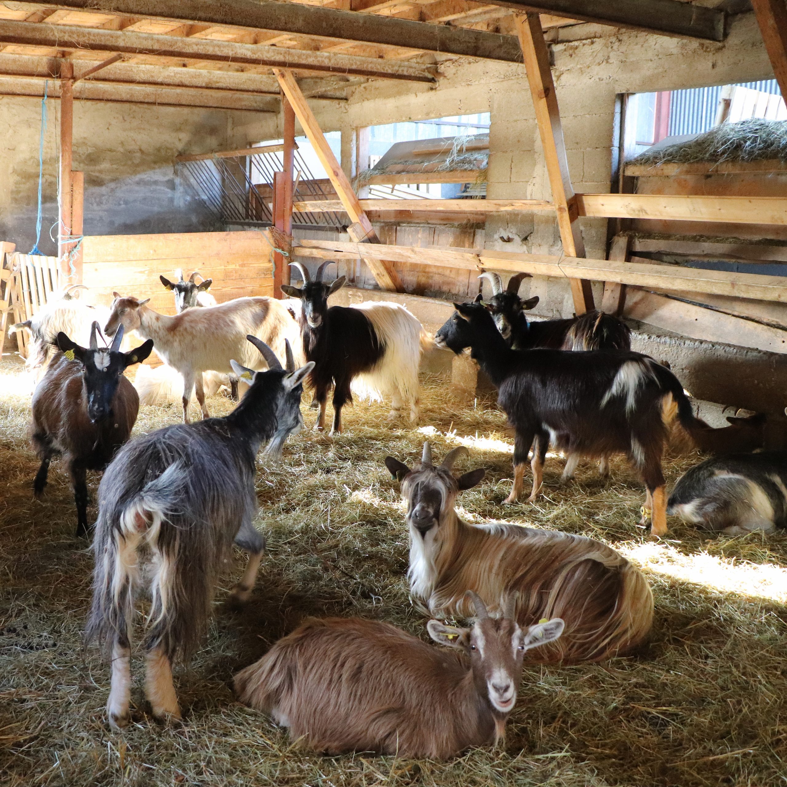 C’est ici que se réfugient les chèvres par temps de grand froid. C’est au même endroit que les chevreaux naissent et grandissent jusqu’à ce qu’ils soient assez grands pour braver le monde extérieur. Ne semblent-ils pas tous heureux, bien au chaud ?